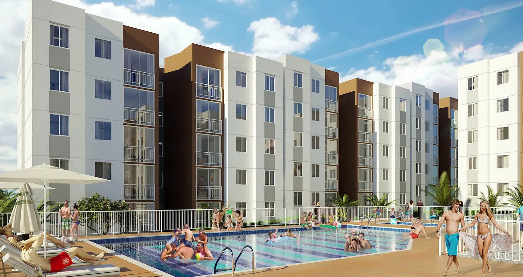Cerros del Viento es un proyecto de apartamentos en conjunto cerrado, conformado por torres de cinco pisos, rodeado de naturaleza y con una vista privilegiada cerca a la ciudad, donde podrás disfrutar en familia y con amigos de sus zonas comunes como piscina para adultos y niños, salón social de dos pisos y juegos infantiles.