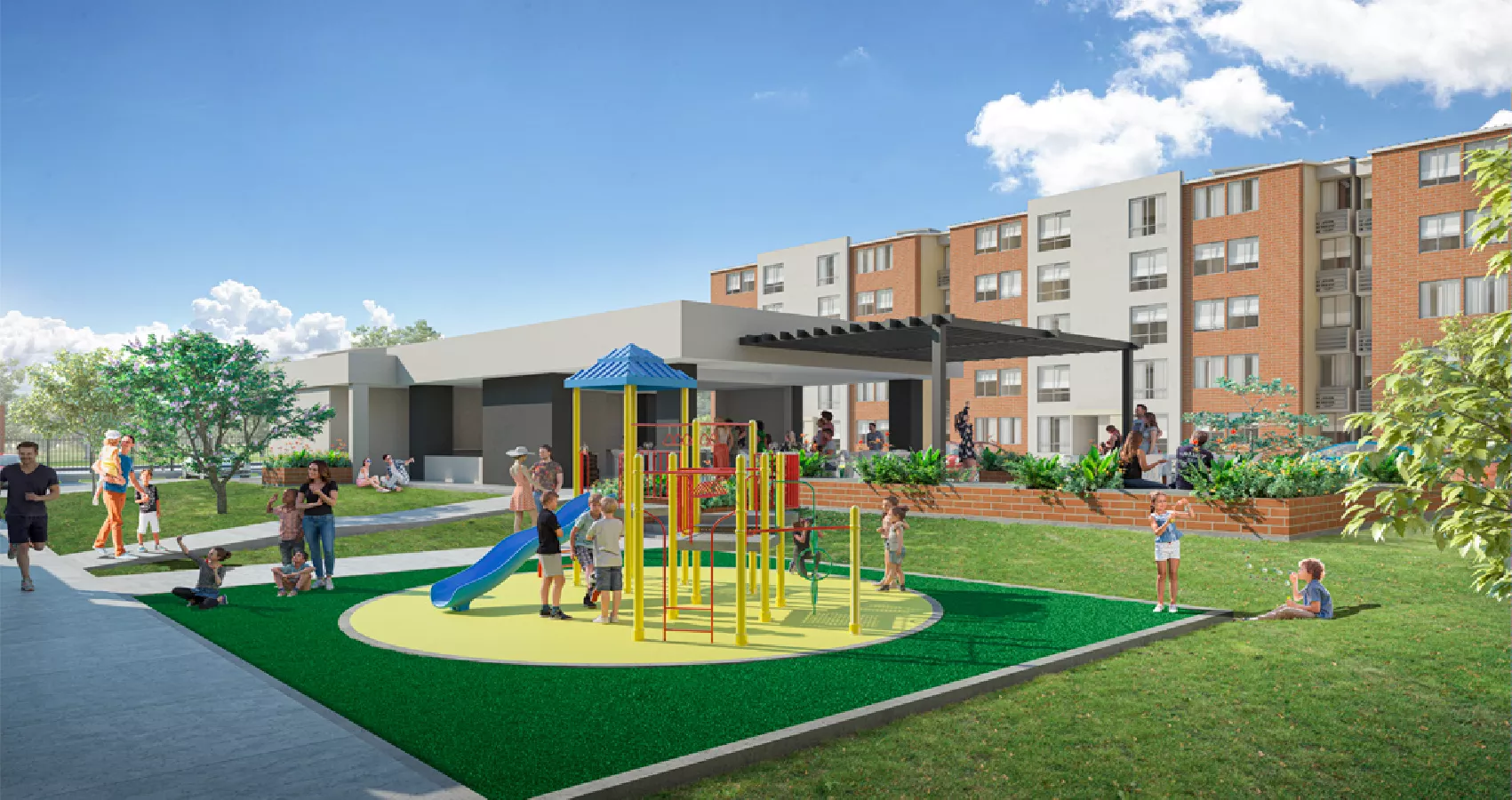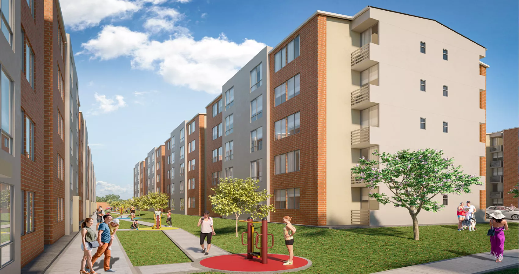 Proyecto de apartamentos en conjunto cerrado, conformado por torres de 5 pisos sin ascensor. En Garzas disfrutarás de zonas comunes diseñadas especialmente para tu bienestar y el de tu familia como salón social, gimnasio biosaludable, juegos infantiles, bicicleteros y zonas verdes.