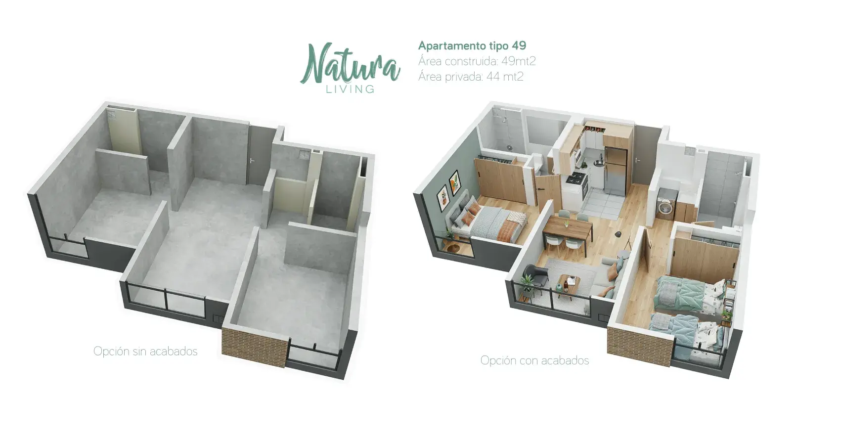 - Área privada: 44m2