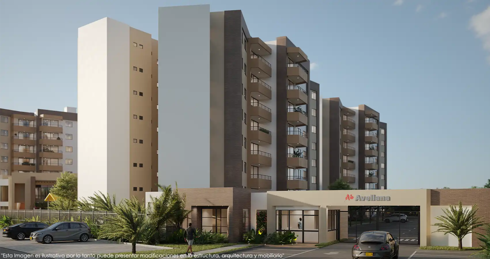 Avellana es un exclusivo proyecto de apartamentos en condominio cerrado con parqueadero propio, conformado por torres de 8 pisos con ascensor. En sus zonas comunes encontrarás espacios seguros para disfrutar en familia, como, baño turco, piscina para adultos y niños, área para BBQ y amplias zonas verdes