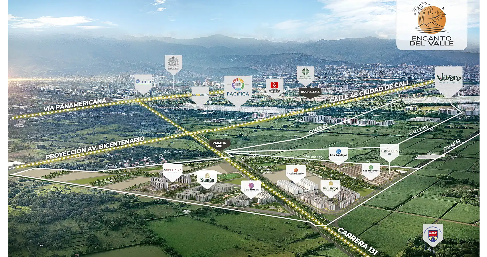 Encanto del Valle es un nuevo desarrollo urbanístico ubicado al sur de la ciudad de Cali. Un lugar nuevo y exclusivo para ti. Hicimos posible vivir rodeado de naturaleza y muy cerca de todo lo que te interesa. Descubre todas las ventajas de nuestro nuevo proyecto de casas y apartamentos con más zonas para el esparcimiento y la recreación en familia.