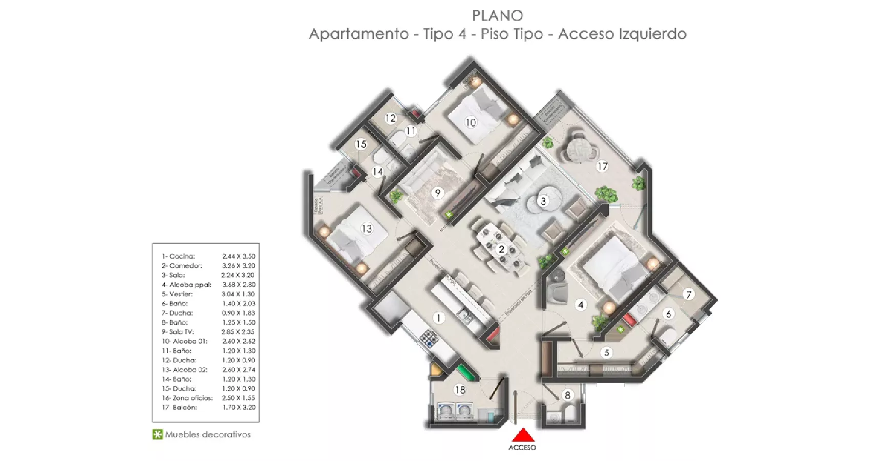 Tipos de apartamentos disponibles en este proyecto