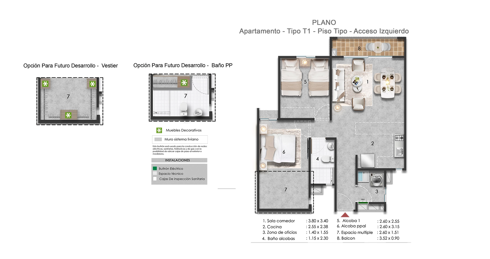 Tipos de apartamentos disponibles en este proyecto