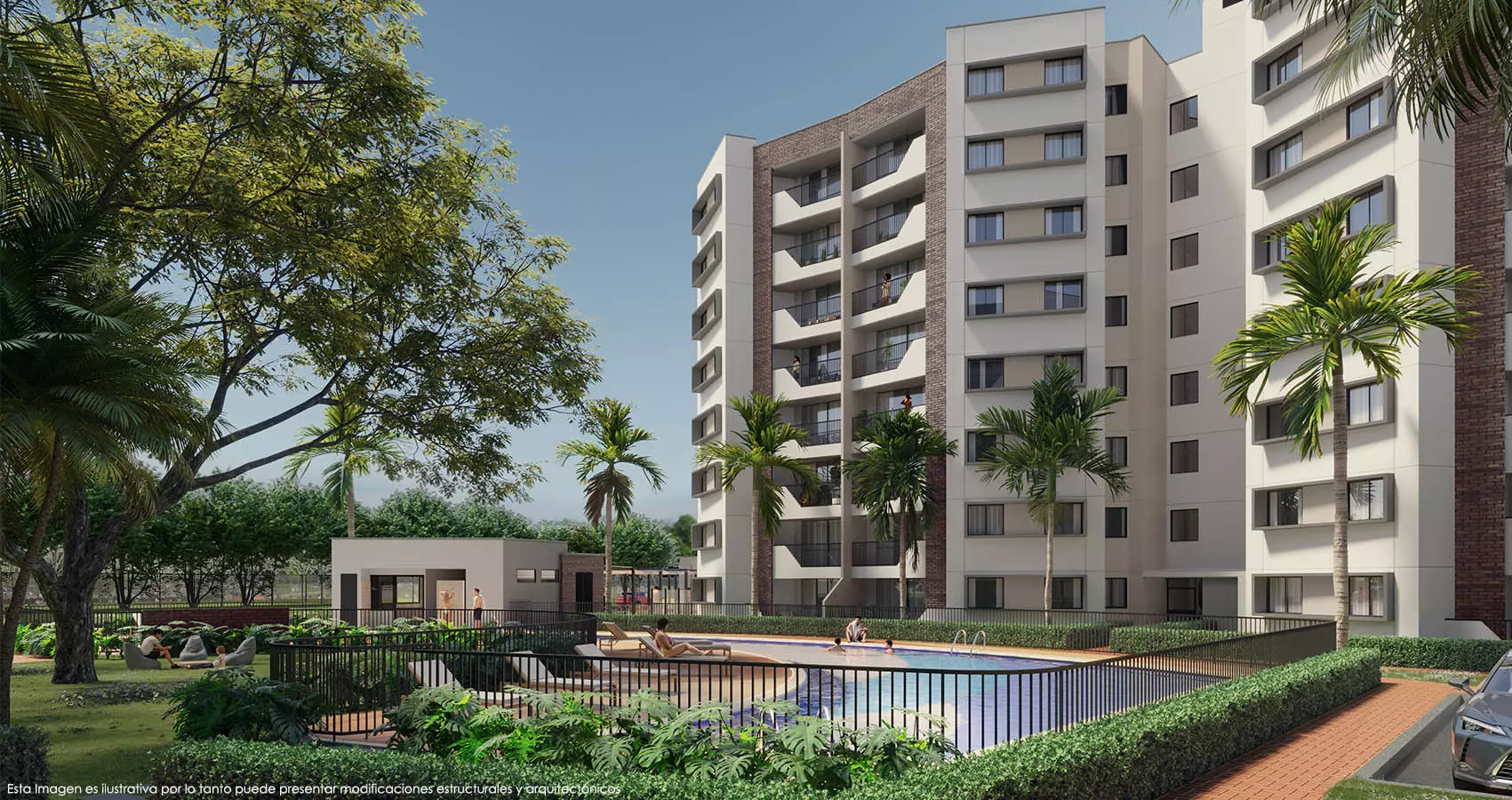 Es un proyecto de apartamentos con parqueadero propio que cuentan con un diseño moderno y lleno de confort. En sus zonas comunes encontrarás espacios para compartir como sala de entretenimiento, zona coworking, gimnasio, terraza lounge, zona BBQ, turco, zonas infantiles y piscina para adultos y niños.