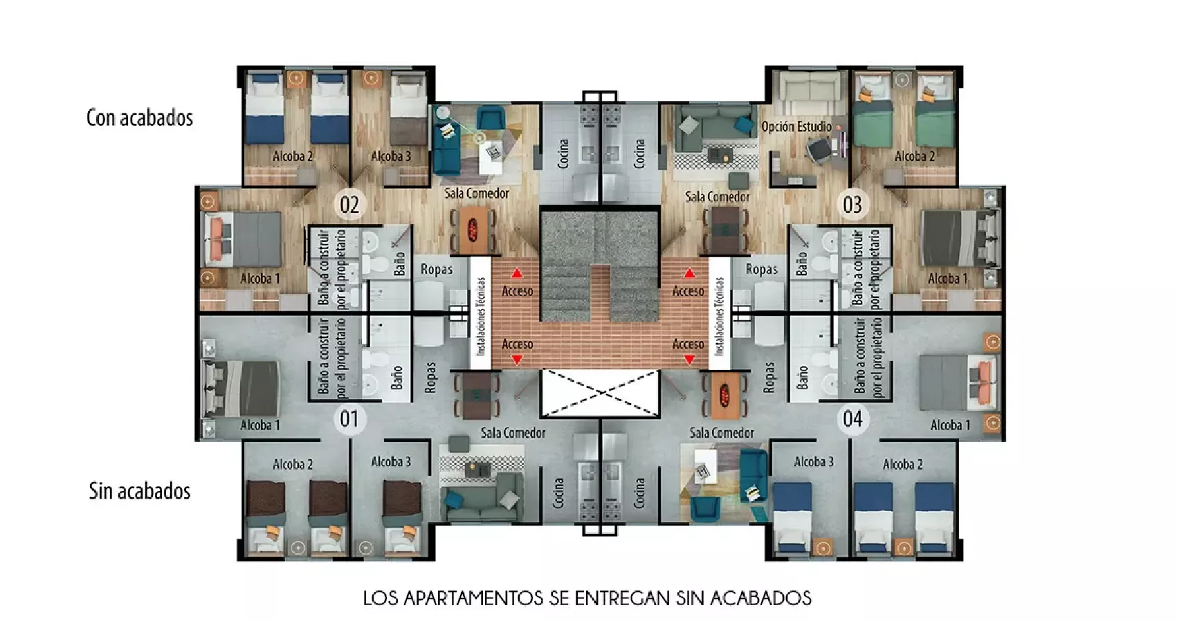 Tipos de apartamentos disponibles en este proyecto
