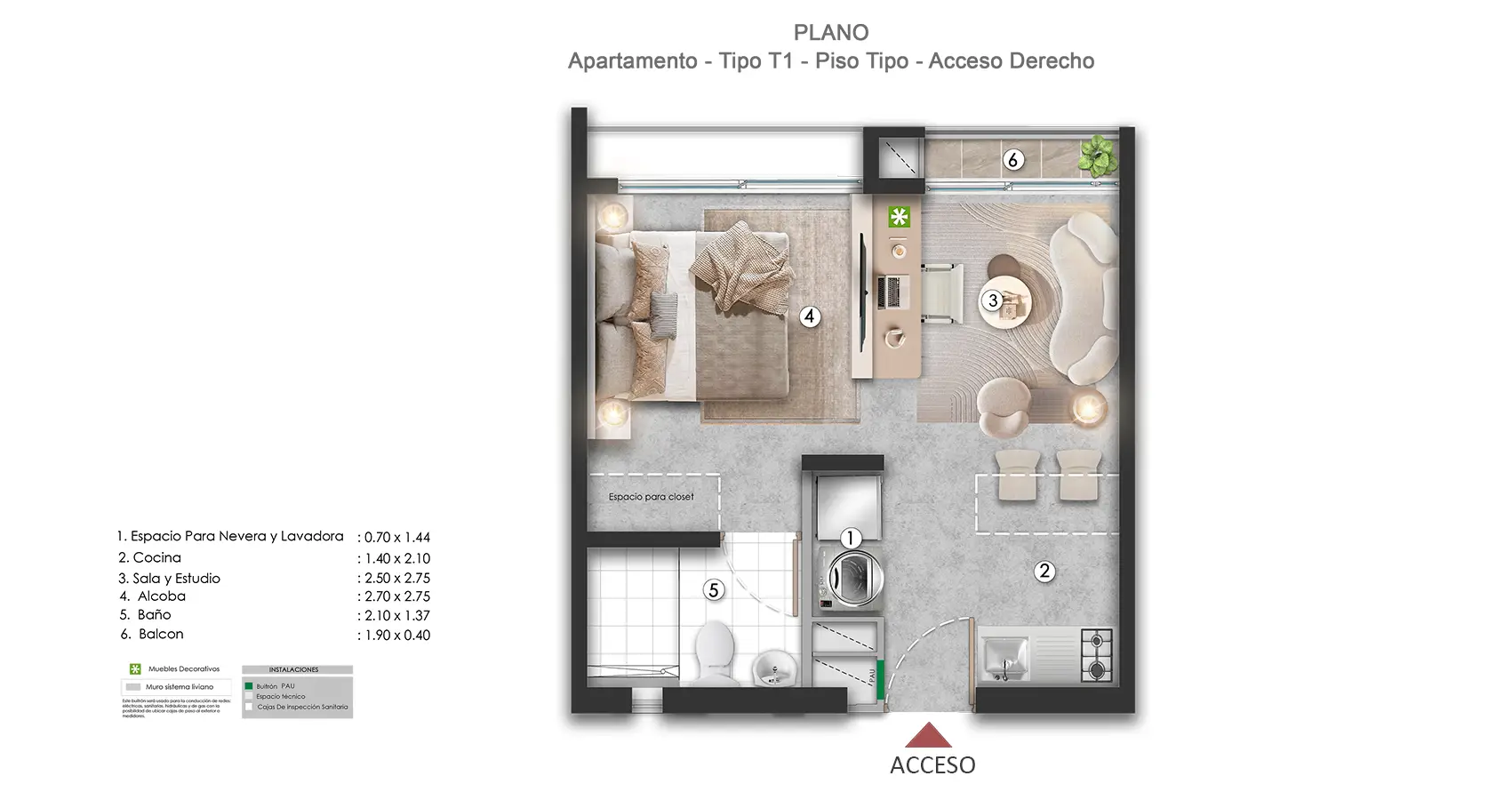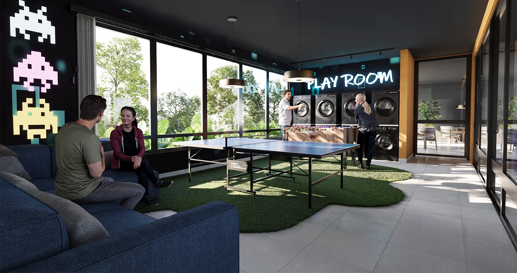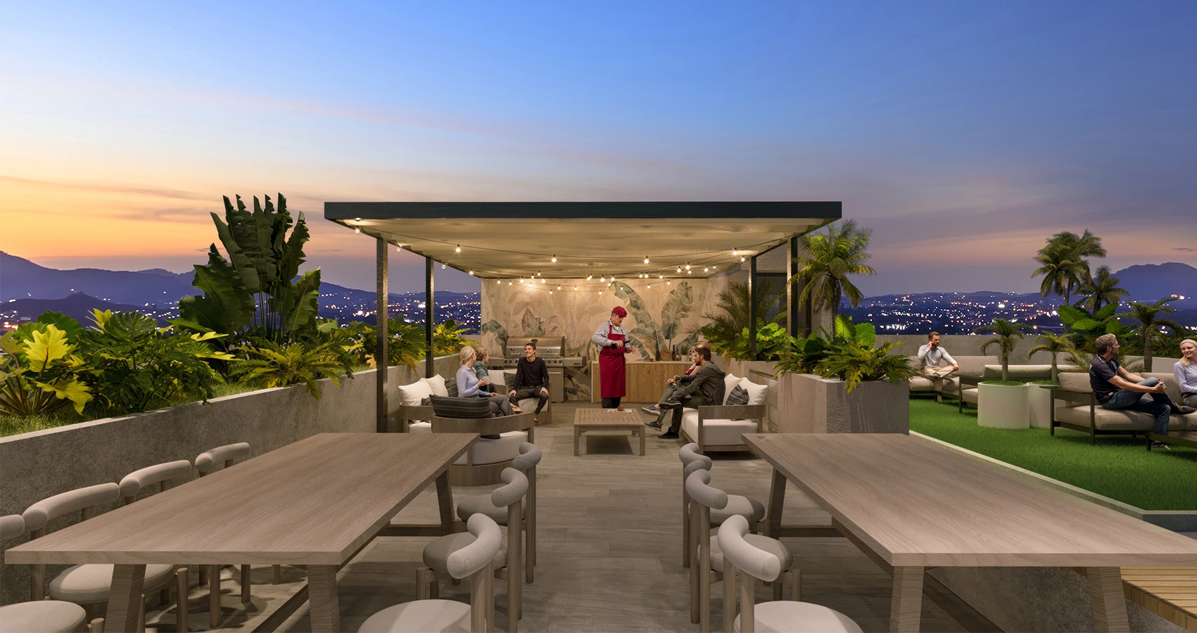 Vive en una torre de 15 pisos con apartamentos cómodos y funcionales, equipada con dos ascensores para mayor comodidad. Disfruta de exclusivas zonas comunes como piscina para adultos, fire pit y área BBQ en una espectacular terraza. Además, accede a una zona coliving completamente dotada con gimnasio, lavandería, sala de entretenimiento, sala premium, coworking y sala de reuniones, todo diseñado para que vivas, trabajes y te conectes sin salir de casa.