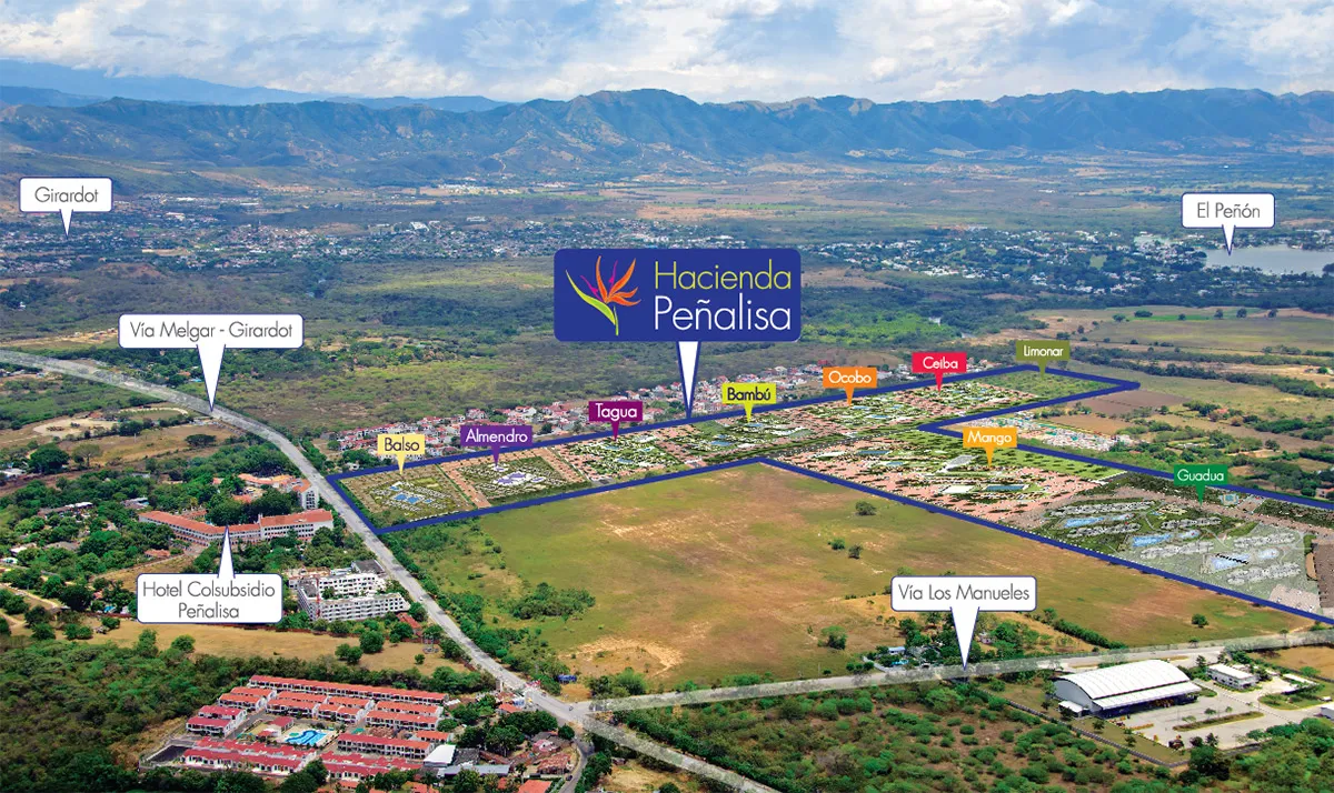 Hacienda Peñalisa es un exitoso desarrollo ubicado en Ricaurte Cundinamarca en la vía Bogotá - Girardot, en un sector de alta valorización y con un gran atractivo turístico; cuenta con una amplia oferta de transporte público y un clima muy agradable para disfrutar como nunca los fines de semana y para pasar temporadas vacacionales increíbles en familia.