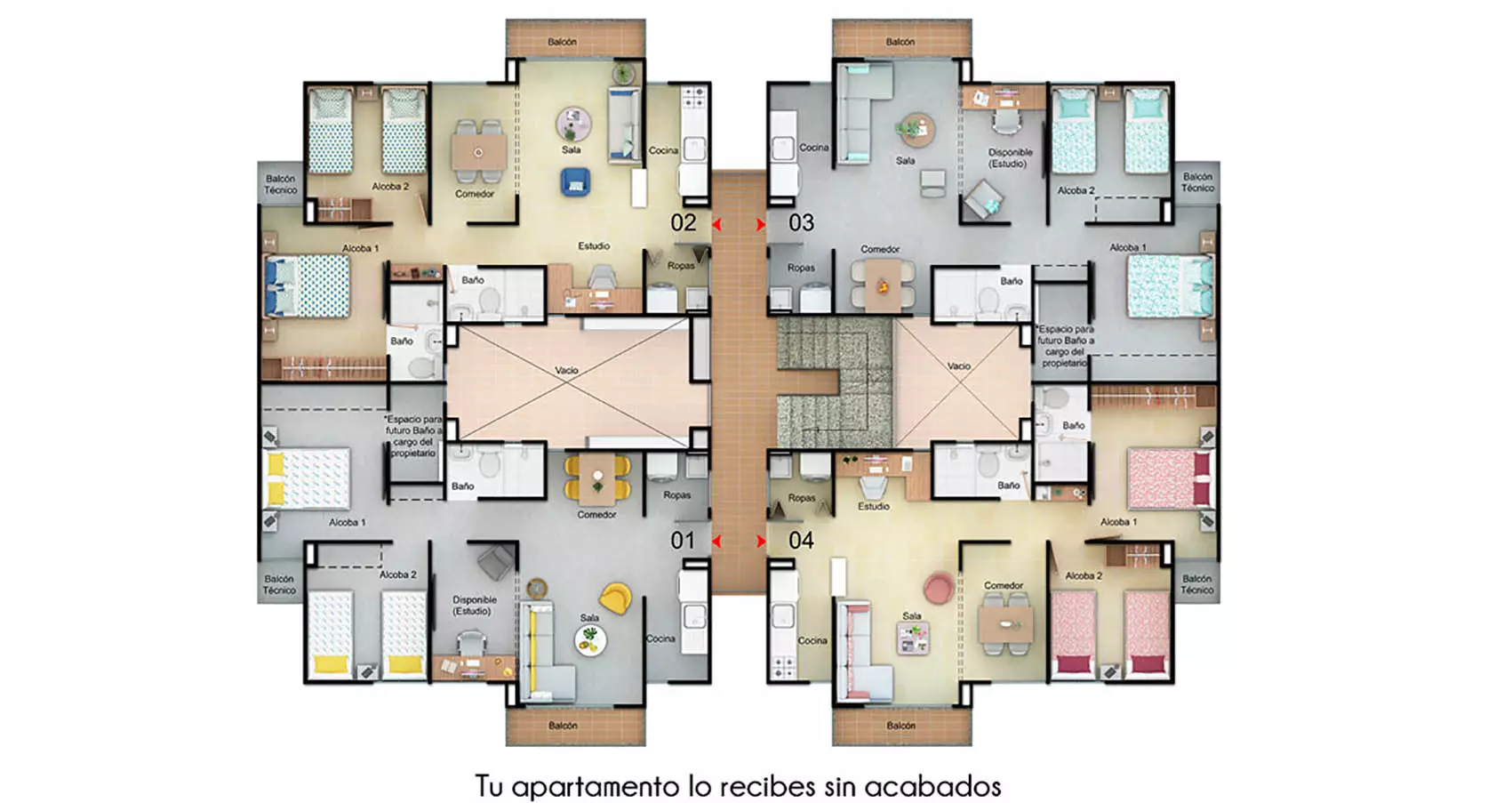 Tipos de apartamentos disponibles en este proyecto