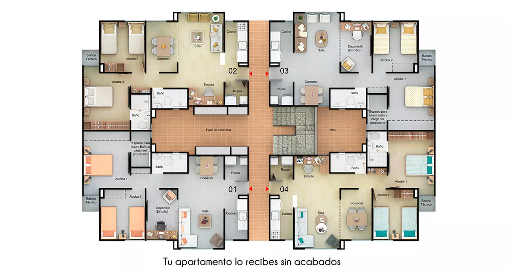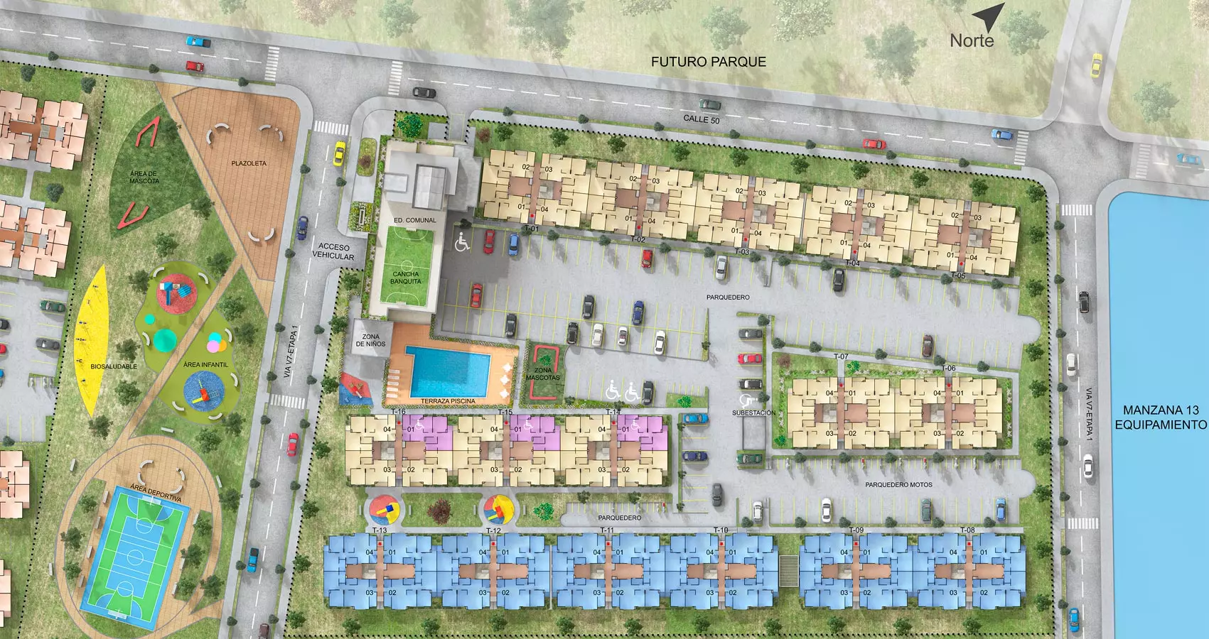 Este proyecto de apartamentos en conjunto cerrado, está conformado por torres de cinco pisos sin ascensor. Disfruta en familia de sus zonas comunes que incluyen piscina, gimnasio, salón social, terraza BBQ, salón de juegos, cancha de fútbol con medidas no reglamentarias, zona para mascotas y juegos infantiles. Adquiere tu apartamento con o sin subsidio de vivienda.
